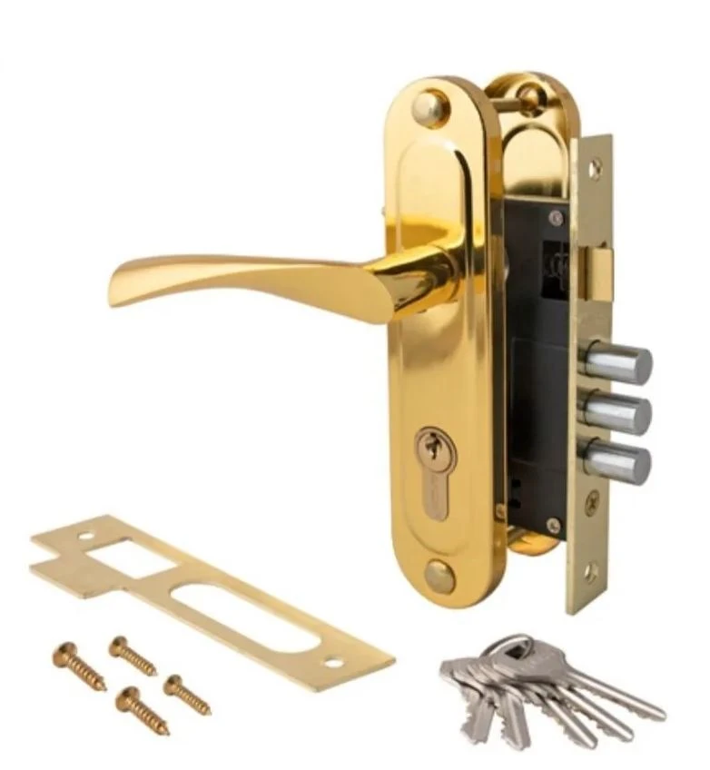 Замок врезной с ручкой АВ-60/1023 золото ПРЕМИУМ /Апекс