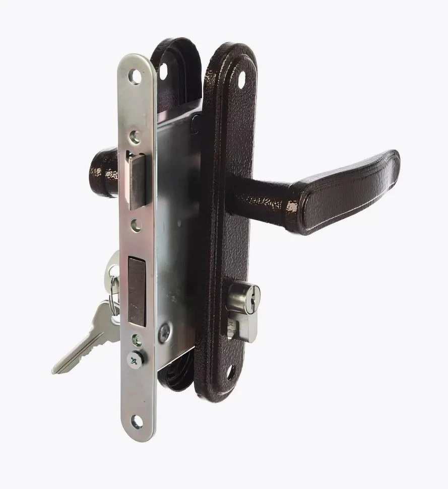 Замок врезной с ручкой ЗВ 4.3.03 серебро цилиндровый 3-ригеля Абсолют Зенит/15 шт.