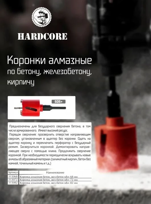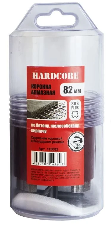 Коронка алмазная бетон, жел-бетон лазер.сварка, 5 сегм., магн.адапт. sds+ 82 мм "Hardcore"