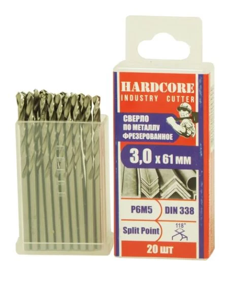 Сверло по металлу Industry cutter 3.0х61 мм Р6М5 фрез. "Hardcore" /20 шт. уп