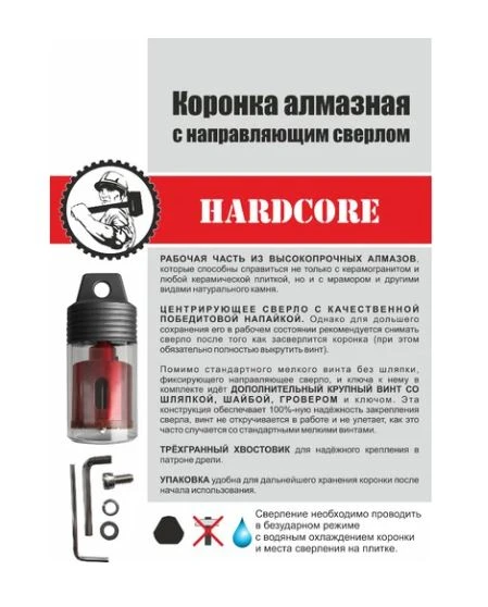 - Тип: Коронка алмазная по керамогр. и мрамору с напр. Сверлом