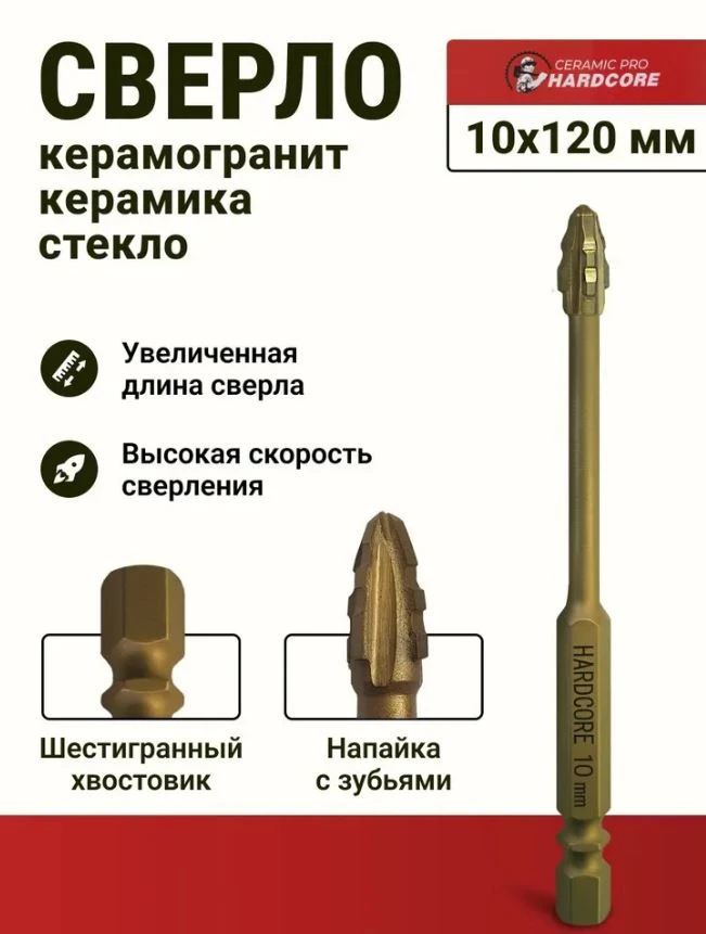 Сверло по керамограниту 10х120 мм Ceramic Pro "Hardcore"
