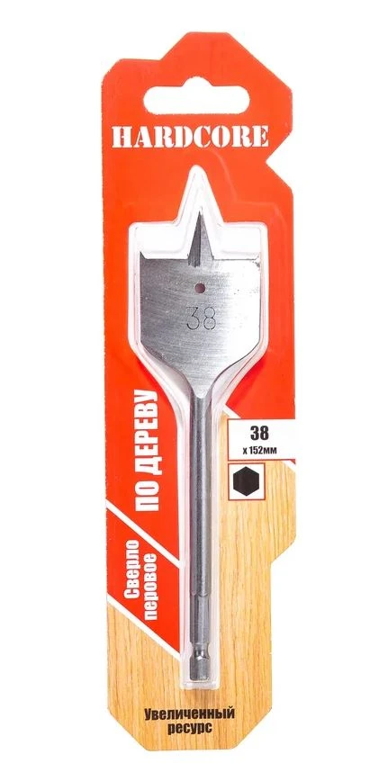 Сверло по дереву перовое38 х 152 мм с подрезателями "Hardcore"