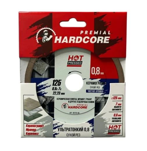 Диск отр.алмазный 125х0,8х7х22,23мм Керамогранит, сух.и мок.рез, Ультратонкий 0,8 Hardcore Hot press
