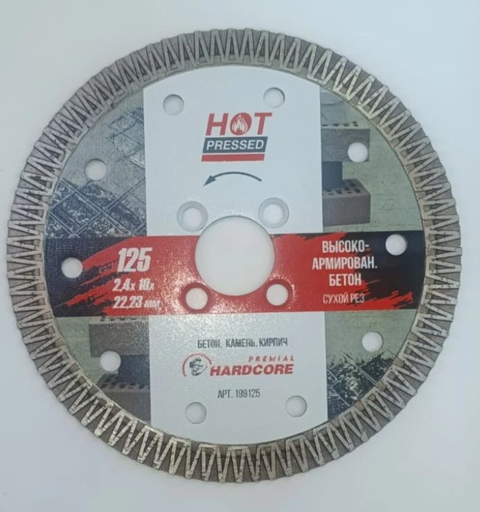 Диск отр.алмазный 125х2,4х10х22,23мм Высокоарм.бетон, камень, Турбо Экспресс Hardcore Hot pressed