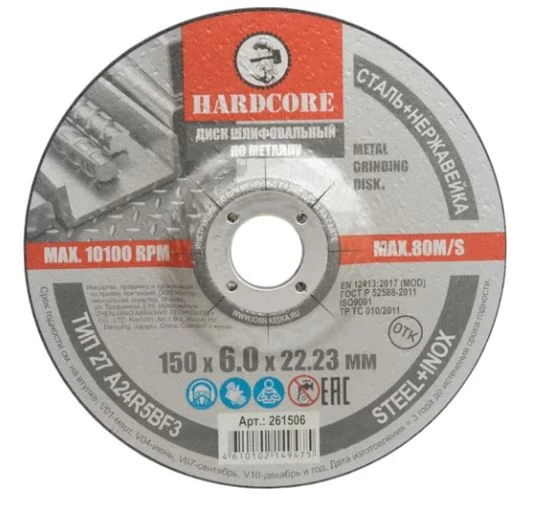 Диск шлифовальный по металлу нерж. сталь 150х6х22,23 мм "Hardcore" /5 шт. уп