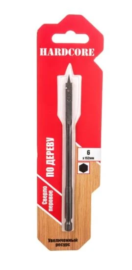 Сверло по дереву перовое 6 х 152 мм с подрезателями "Hardcore"