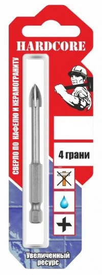 Сверло по керамограниту и керамич. плитке 10мм 4 грани "Hardcore"