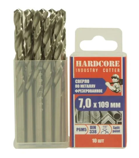 Сверло по металлу Industry cutter 7.0х109 мм Р6М5 фрез. "Hardcore" /10 шт. уп