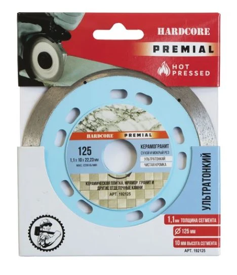 Диск отрезной алмазный 125х1,1х10х22 сух. мокр. рез сплошной Керамогранит Ультротонкий "Hardcore"