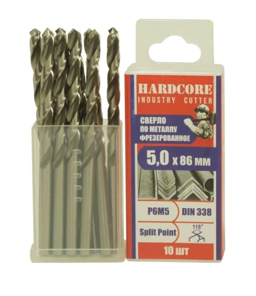 Сверло по металлу Industry cutter 5.0х86 мм Р6М5 фрез. "Hardcore" /10 шт. уп
