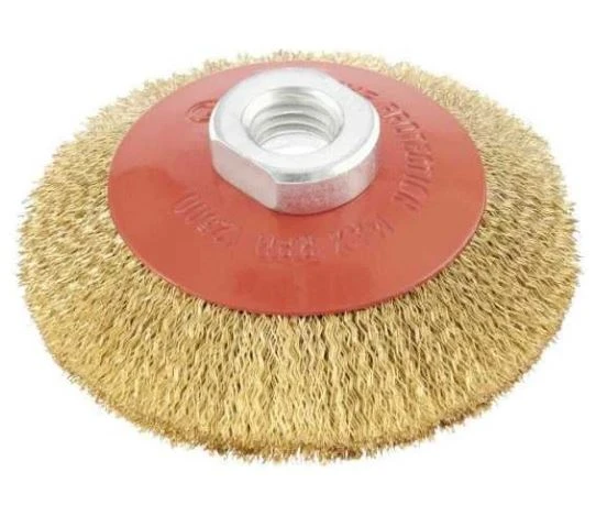 Щетка-тарелка для УШМ 100 мм, М14, латунир. волнистая проволока "Hardcore"