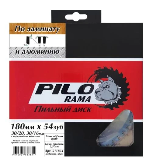 Диск пильный по ламинату и алюминию 180 мм х 54 зуб. х 30/20 мм "Pilorama"