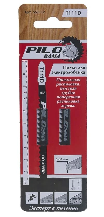 Пилки для лобзика 100х75 мм 6з/д (дер,фан,дсп h=6-60мм) груб. распилТ111D 2 шт/карта "Pilorama"