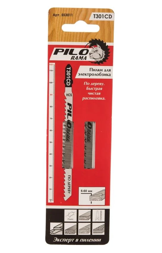 Пилки для лобзика 115х90 мм пер8 з/д (дер,дсп.фа h=6-60мм) быс. распилТ301СD 2 шт/карта "Pilorama"