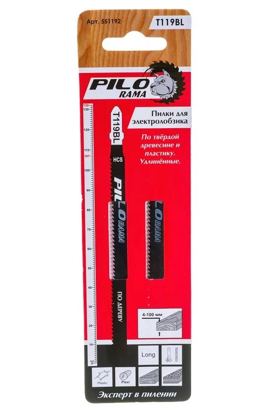 Пилки для лобзика 132х107 мм 12з/д (дер,пласт h=4-100мм) прод. распилТ119В 2 шт/карта "Pilorama"