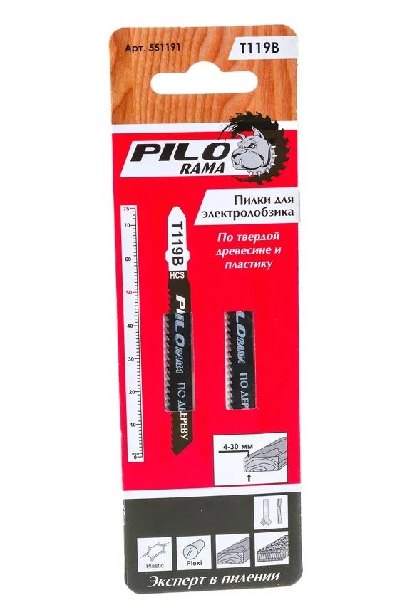 Пилки для лобзика 75х50 мм 12з/д (дер,фан,дсп пл h=4-30мм) прод. распилТ119В 2 шт/карта "Pilorama"