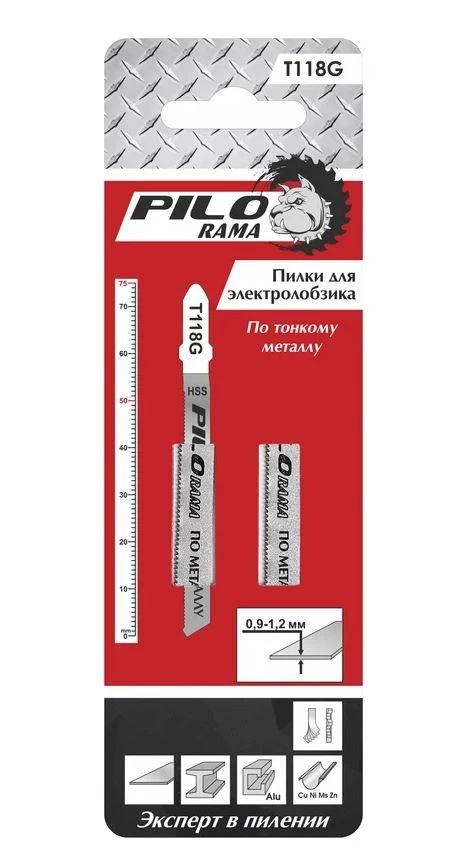Пилки для лобзика HSS 75х50 мм 32з/д (сталь, цв. мет.пласт.h=0.9-1.2) Т118G 2 шт/карта "Pilorama"