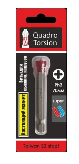 Биты 1/4 Ph2-70 мм с магнитной насадкой "Quadro Torsion" (1 шт/карта)