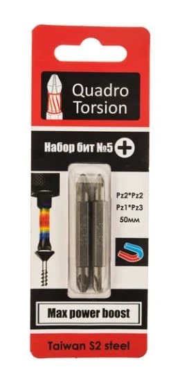 Набор бит №5 Pz2 x Pz2. Pz1 x Pz3-50 мм "Quadro Torsion" (2 шт/карта)