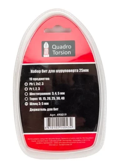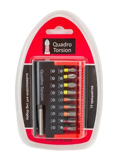 Набор бит19 пред.Ph1,2 ,3 ,Pz 1.2.3 шестигр.3-5 мм Torx10- 40 мм шлиц 3,5х25 мм держ"Quadro Torsion"