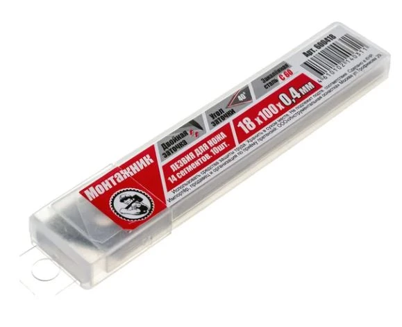 Лезвие 18х100х0,4 мм 14 сегментов 10 шт,уп "Монтажник"/20 шт.