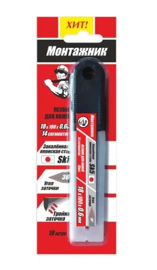 Лезвие 18х100х0,6 мм 14 сегментов для ножей SK5 /10 шт.уп "Монтажник"/6 шт