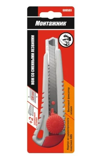 Нож 18 мм со смен. лезв. 1+2 лезв. РР пластик, винт фикс. "Монтажник"