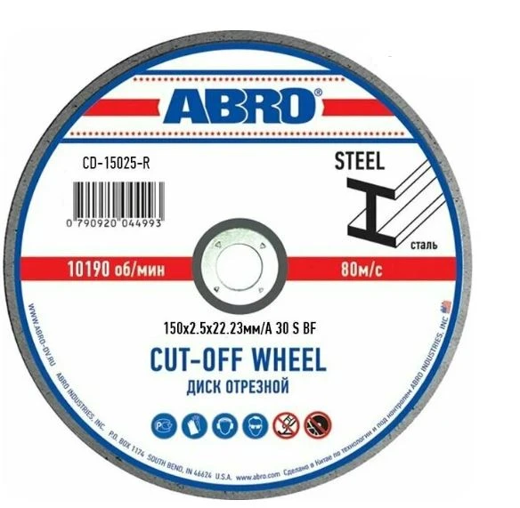 Диск отрезной по металлу 150х2,5х22 /10 шт ABRO