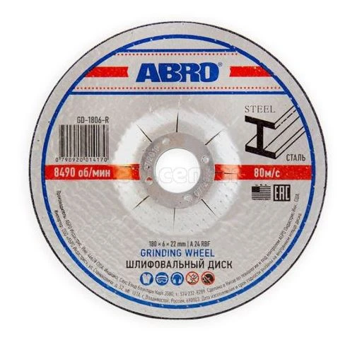 Диск шлифовальный по металлу 180 х 6 х 22 ABRO