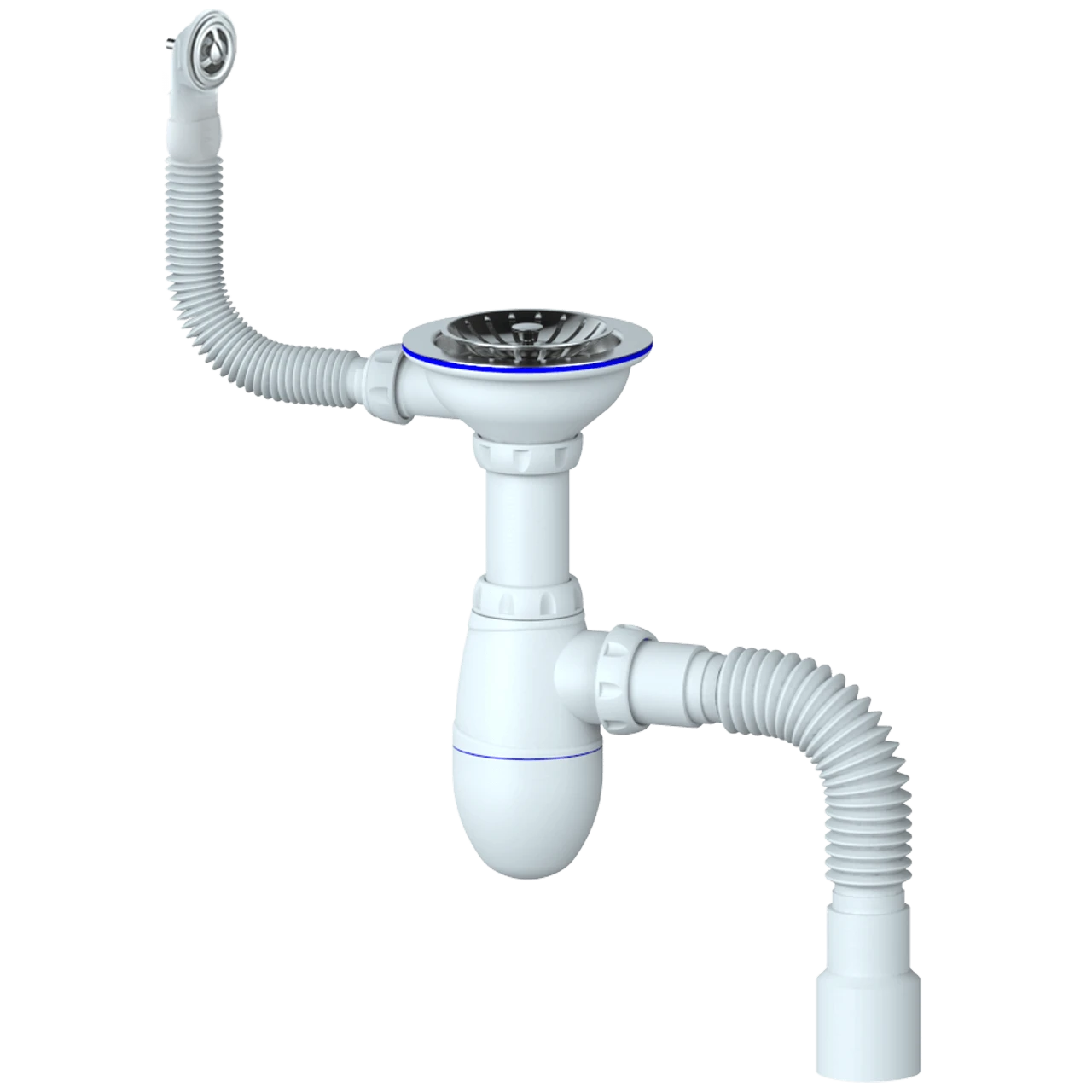 Сифон для мойки с выпуском 3 1/2 D40 и круглым переливом, с гибким соед. D40x40/50 (UNICORN)