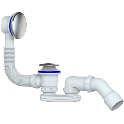 Сифон для ванны автомат с перелив. хром. чашка из нерж.стали с гиб.отв. 40х40/50 45° S121E
