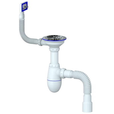 Сифон для мойки с выпуском 3 1/2 прямоуг. перелив с гибким соед. 40/50 B425 (UNICORN) (А0145S)