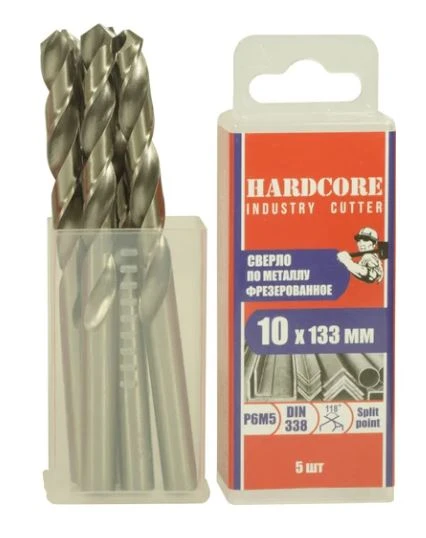Сверло по металлу Industry cutter 10,0х133 мм Р6М5 фрез. "Hardcore" /5 шт. уп