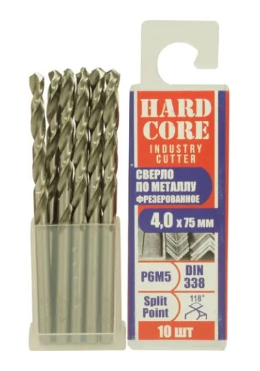 Сверло по металлу Industry cutter 4.0х75 мм Р6М5 фрез. "Hardcore" /10 шт. уп
