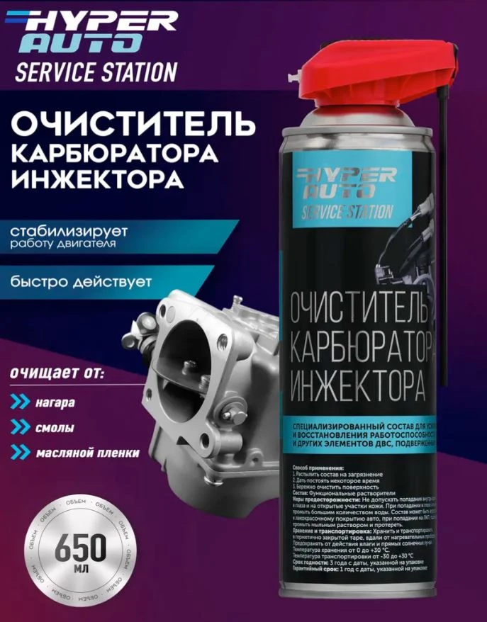 Hyper AUTO SERVICE STATION, Очиститель карбюратора/ Инжектора, аэрозоль 650мл.
