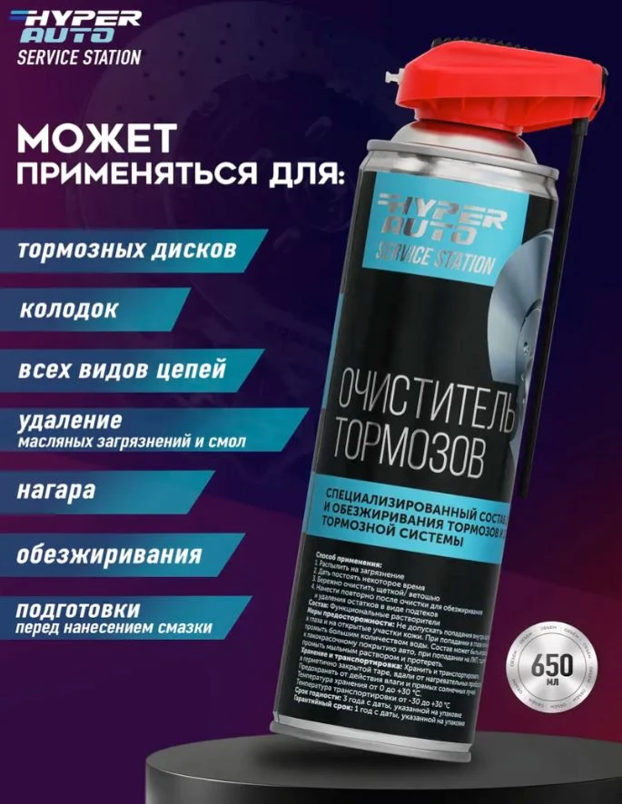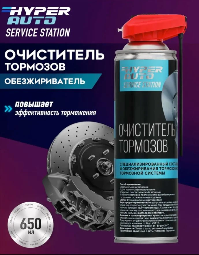 Hyper AUTO SERVICE STATION, Очиститель тормозов, аэрозоль 650мл.