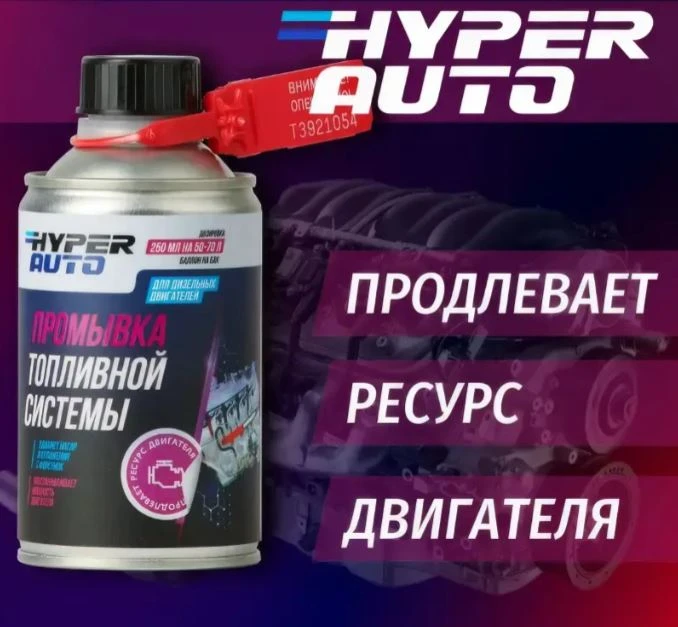 Hyper AUTO, Промывка топливной системы в дизель, баллон мет. 250мл