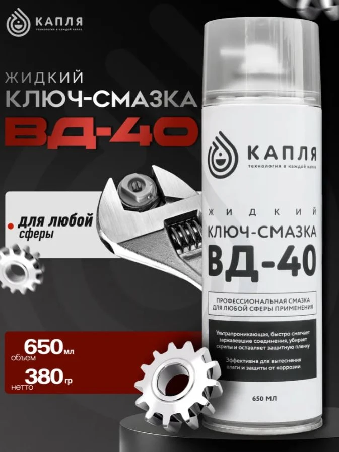 КАПЛЯ, Жидкий ключ-смазка ВД-40, аэрозоль 650мл